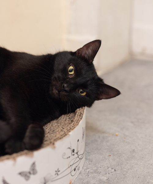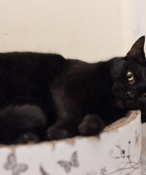 Czarny kot na szczęście? Poznaj Batmana! Batman trafił do nas prosto z jednej ze szczecińskich ulic. Był w bardzo złym stanie – wychudzony, chory, z dużą raną na nosie. Dziś to zupełnie inny kot: zdrowy, elegancki przystojniak o bursztynowych oczach! Batman to ciekawski kocurek. Ma swój niepowtarzalny znak rozpoznawczy: nie miauczy, tylko skrzeczy w zabawny sposób, zwracając na siebie uwagę. Jest towarzyski i zawsze kręci się gdzieś w pobliżu człowieka. Nie jest typem kota nakolankowego, ale bardzo lubi głaskanie. Z przyjemnością spędza czas w mięciutkich legowiskach ucinając sobie drzemki. Szukamy dla Batmana spokojnego, niewychodzącego domu, najlepiej bez innych kotów. Odnajdzie się świetnie jako rozpieszczony jedynak.